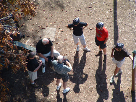First order of business is lunch. Bob, Carl, George, Marty and Bobby D. dine al fresco ... |